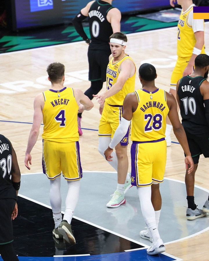 湖人官方账号报道。本场NBA常规赛,湖人队球员数据如下:奥斯汀·里夫斯得到28分16助攻;贾克森·海斯得到27分8篮板;丹吉洛·拉塞尔得到17分10篮板3助攻;八村垒得到17分5篮板4助攻;克里斯蒂安·伍德得到15分2盖帽。