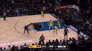 末节,克内克特中投命中,里夫斯轰进三分,麦克丹尼尔斯和戈贝尔接连罚球得分,拉拉维亚轰进底角三分助湖人保持领先;最后5分钟,里夫斯三分对飚康利,戈贝尔轻松扣篮,迪文琴佐三分打停湖人;决胜时刻,里夫斯助攻艾顿中投得分,兰德尔造犯规两罚全中,麦克丹尼尔斯追身三分以及禁区扣篮,10.2秒兰德尔突破上篮反超1分,里夫斯压哨绝杀,最终湖人惊险击败森林狼。